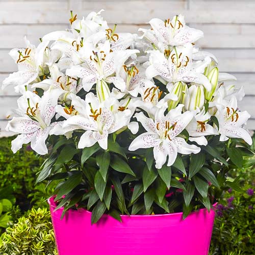 Наш магазин предоставляет широкий выбор лилий на любой кошелек. Мы гарантируем быструю доставку почтой, качественный сервис и профессиональную консультацию по любым вопросам. Транспортировка растений осуществляется в тубусах и горшках, наполненных питательной почвосмесью. Благодаря этому они долгое время сохраняют жизненные силы и презентабельный вид.