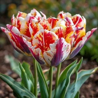 Представляем вашему вниманию тюльпан “Вельвет Мираж” – сорт, который поражает своей утонченной красотой и необычной цветовой палитрой. Этот тюльпан словно волшебный мираж, сотканный из нежных белых лепестков, украшенных загадочной фиолетовой сердцевиной и яркими желто-красными акцентами. “Вельвет Мираж” – это выбор для тех, кто ценит элегантность, стремится создать в саду атмосферу изысканности и готов восхищаться красотой, выходящей за рамки обыденного.